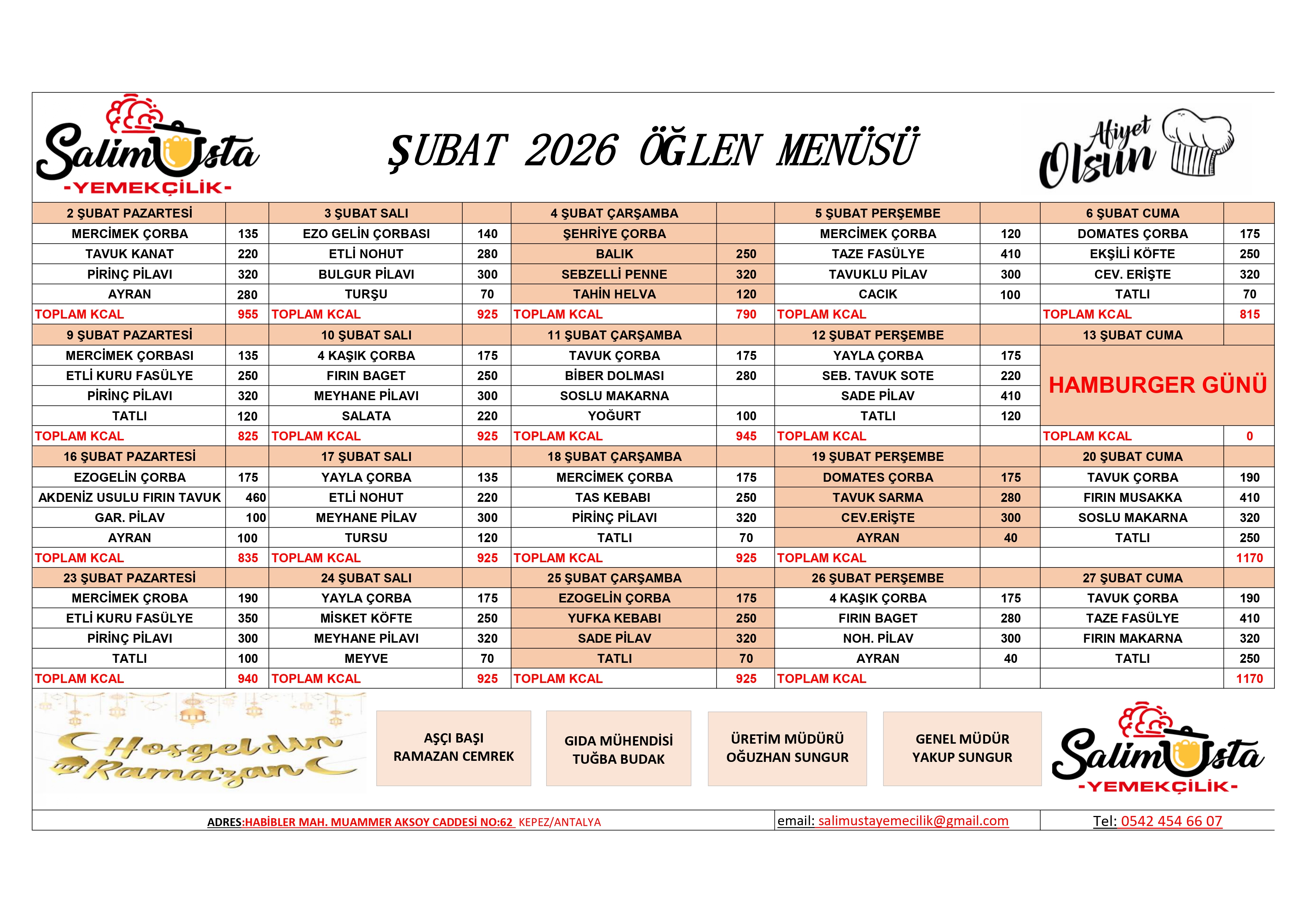 02-27 Şubat 2026 | Çallı Yemekhanesi Aylık Yemek Listesi Eklenme tarihi: 31.01.2026 16:15:07 Son güncelleme: 16.02.2026 13:58:54